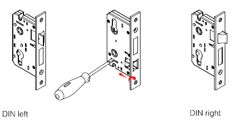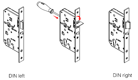 用一字螺絲刀在背部頂出斜舌旋轉180度後複位。