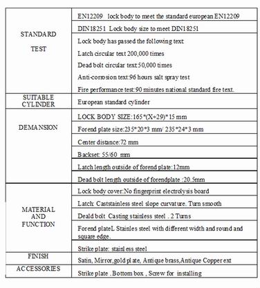 The fireproof lock body of size 5572 and 6072 pay attention to the appropriate size and the use of materials. The lock bolt, panel and square hole of Lelang hardware are all stainless steel 304. The surface treatment is brushed and can be equipped with any style of split handle and 72 holes. Panel handles.