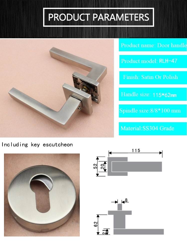 Ironmongery Door handle square Design solid stainless steel door lever handle